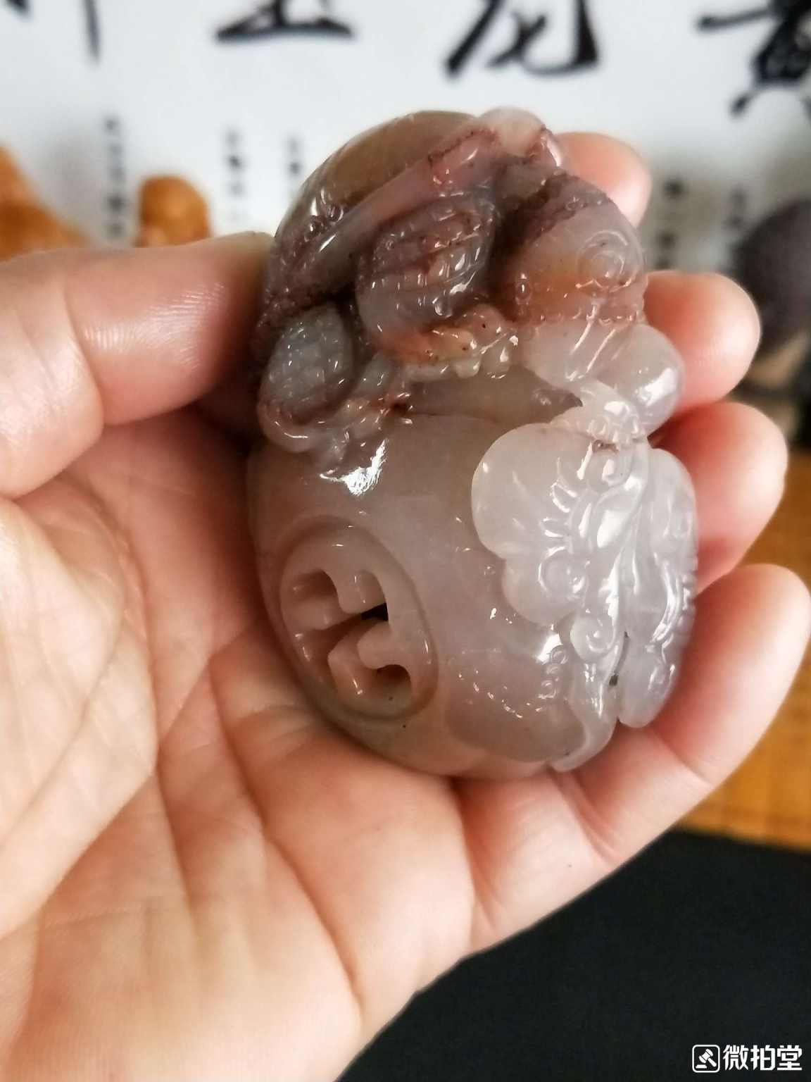藏品名称:黄龙玉镂空巧雕手玩件 参考价格:850000.00 藏品规格: 藏品款识: 藏品类别:微拍