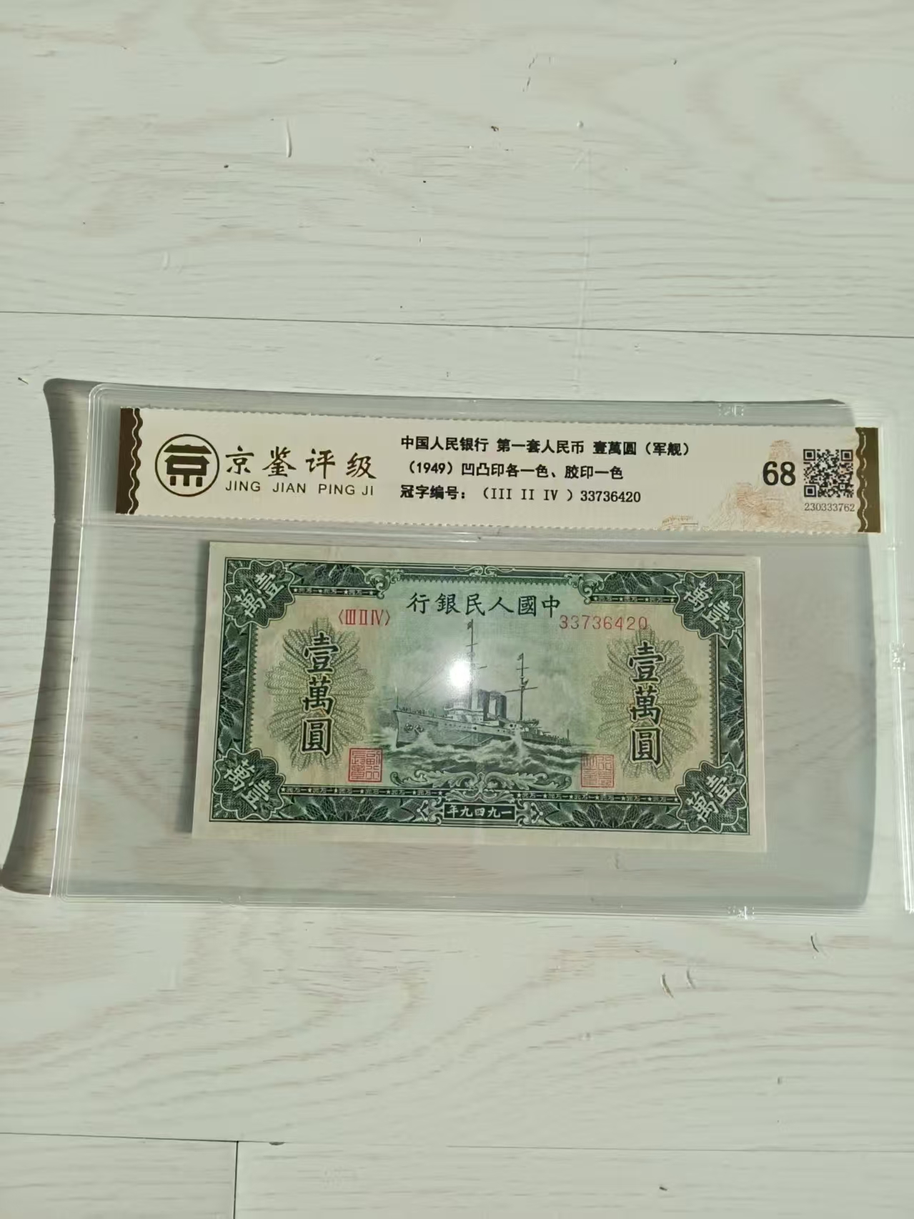 藏品名称:第一套人民币 参考价格:188000.00 藏品规格: 藏品款识:第一套人民币 藏品类别:古现代藏品